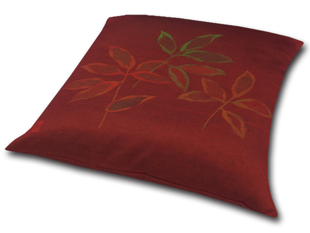 ■業務用座布団専門店【十人色彩】紬(つむぎ)織り座布団カバー■熟練職人の匠■絹交絵羽織「葉群」赤 EBA-KINU06a