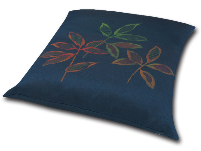 ■業務用座布団専門店【十人色彩】紬(つむぎ)織り座布団カバー■熟練職人の匠■絹交絵羽織「葉群」青 EBA-KINU06b