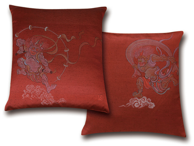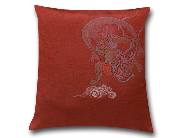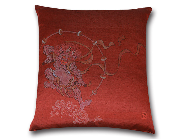 ■業務用座布団専門店【十人色彩】紬(つむぎ)織り座布団カバー■熟練職人の匠■絵羽織シリーズ「風神雷神」 赤 EBO-2323R