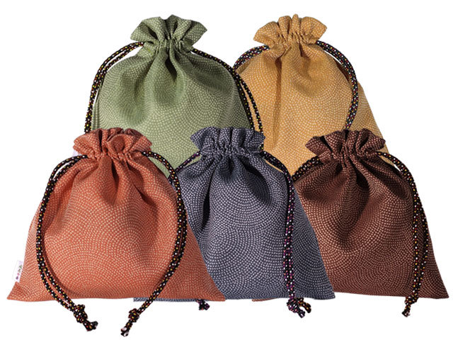 【十人色彩】紬織り■成美巾着■■お試し5枚セット「鮫小紋」■汚れに強い撥水加工!■送料無料■NARUMI-0010